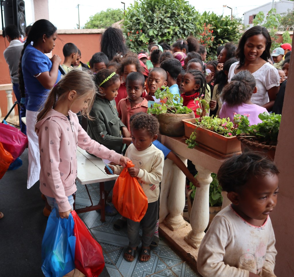 Am așteptat cu drag întâlnirea specială a copiiilor de Crăciun. La ora 8 dimineața, strada era plină de copii gălăgioși ce se jucau în praf, murdari dar bucuroși… Pentru o vreme au uitat de foame și de sărăcia de acasă. Au dat năvală în curtea de la centru și au așteptat curioși ce avea să urmeze. Atenți la ce le spuneam, le-am împărtășit pe rând (malgași și români) adevăratul motiv al sărbătorii de Crăciun – Vestea cea bună. Dumnezeu L-a trimis pe Fiul Lui, pe Isus să se nască în chip miraculos… dintr-o fecioară! El este soluția Tatălui pentru păcatul și povara lumii.