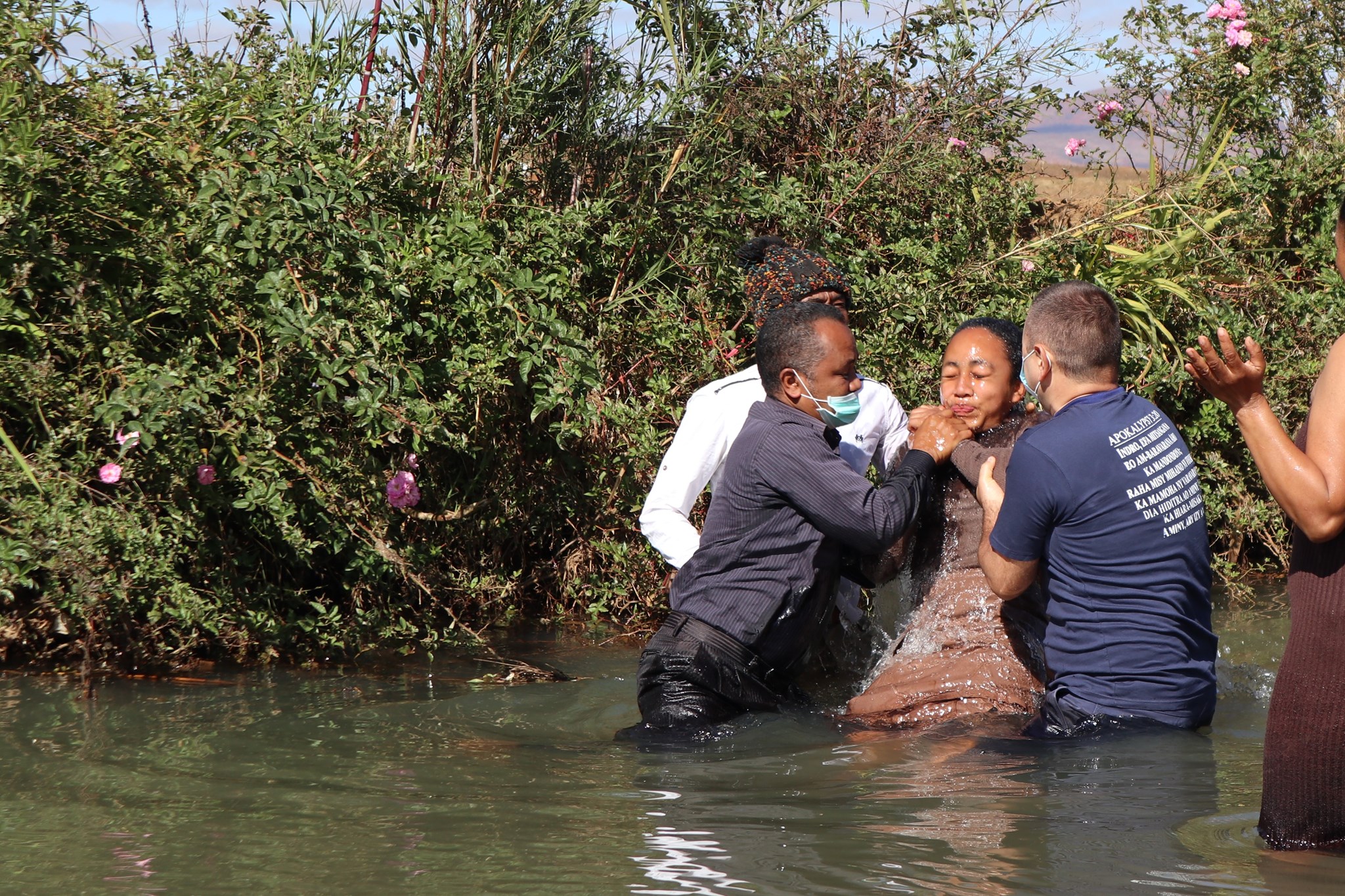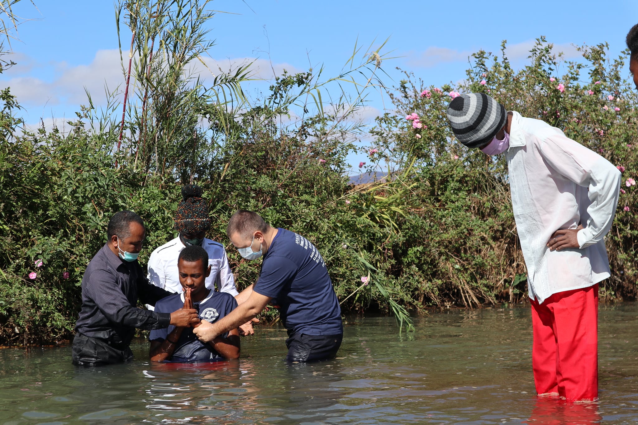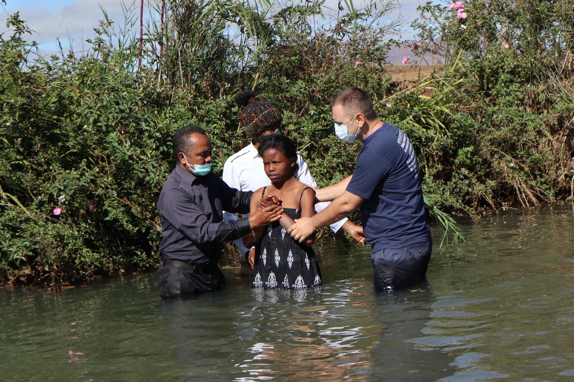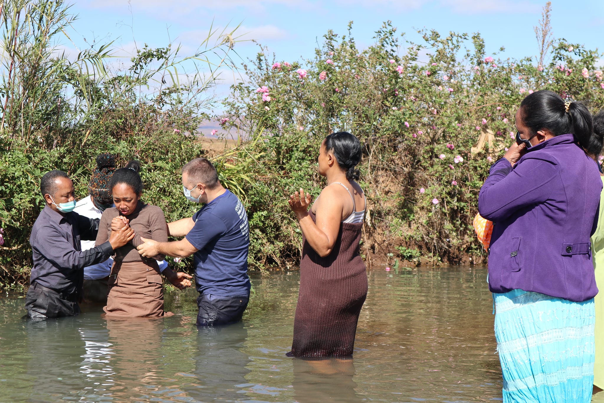 These young people have decided to declare publicly that they belong to God and that they want to serve Him until the end of their lives, even in the midst of a pandemic, on August 8, 2020. (on the day we celebrated 10 years of marriage 🙂). Together Pastor Samisoa Andriamihanta and I, we were happy and honored to officiate this baptism, especially since his daughter was also baptized.